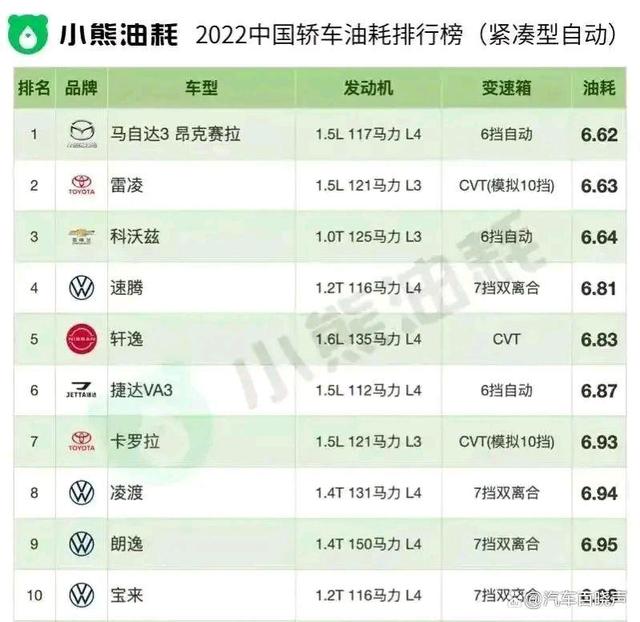 不知道大家发现没有,在国内买车油耗是一个“永恒不变”的话题,养车花费高,国内油价不稳定,油费支出占大头,让国内消费者买车的时候不得不深思熟虑。根据“小熊油耗”(这是车主加油以后实测上传的数据,比较具有统计意义)统计的2022年中国轿车紧凑型自动挡油耗排行榜来看,油耗低的车不一定热销,但是热销的车型油耗都比较低。其中丰田雷凌、大众速腾、日产轩逸、丰田卡罗拉等等车型都非常具有代表性,都进油耗排行榜前十名。大众桑塔纳、丰田亚洲狮、别克威朗和本田思域,油耗排名也比较靠前。2022年紧凑型轿车油耗公布:7个油耗进不了前十,油耗最高是UNI-V。