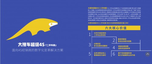 成立于2006年的车易拍,有着十几年的二手车在线交易经验,沉淀了海量的二手车行业底层数据。车易拍基于“云+端”的数据架构,整合了车型参数记录、车辆维修保养记录、出险记录和交易记录。在“数据”的基础上,车易拍融合了大搜车的SaaS服务能力,推出了以拍卖为核心的全链路数字化解决方案——超级4S(二手车版),将数字化能力开放赋能给经销商集团和汽车主机厂。该系统融合了车易拍核心的拍卖、268V云检测、估价助手等数字化工具,能够快速地帮助车企提升置换率和二手车处置能力,并实现标准化检测、精准估价和智能决策。