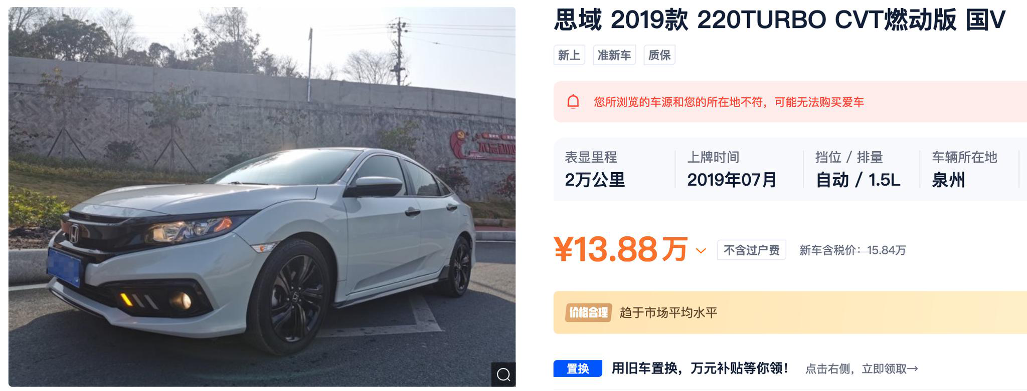 跑了不到一年的思域预售价13.88万,,新车落地15.84万.