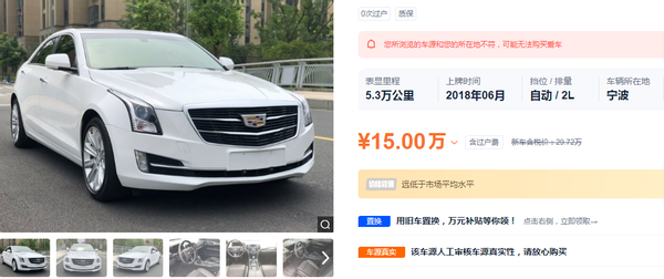 跑了不到三年的凯迪拉克,2.0自动挡,预售价15万,新车标价落地29.72万。