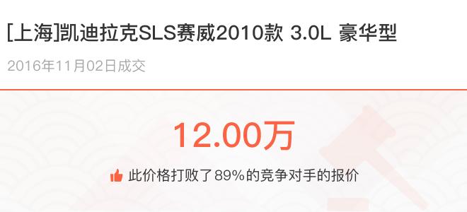 下面一起来看下开了不同公里数的凯迪拉克SLS赛威在二手车拍卖平台上卖了多少钱: