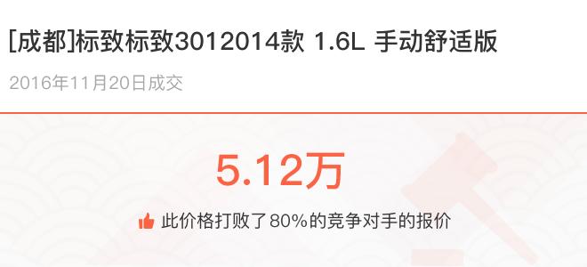 下面一起来看下开了不同公里数的标致标致301在二手车拍卖平台上卖了多少钱: