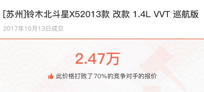 下面一起来看下开了不同公里数的铃木北斗星X5在二手车拍卖平台上卖了多少钱: