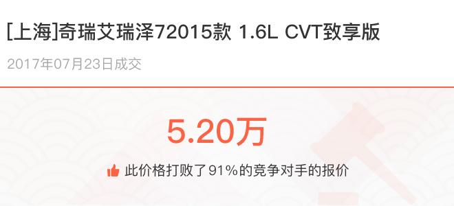 下面一起来看下开了不同公里数的奇瑞艾瑞泽7在二手车拍卖平台上卖了多少钱: