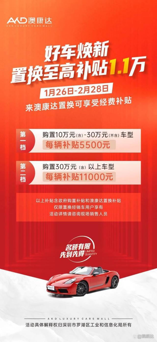 跑车都是用来享受的,只不过享受也分种类,当然,在我们澳康达,各类跑车均有现车在售,感兴趣的朋友欢迎前来展厅亲自品鉴!对了,2023年1月26日-2月28日,购置补贴活动还在继续,来澳康达置换最高可领11000元!名额有限,先到先得,千万别错过!