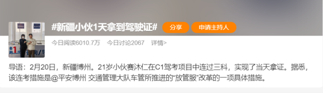 并且当天就拿到了驾驶证