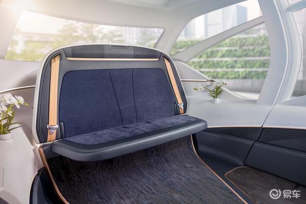概念车的后排装配了两个单独座椅,它们可以完全放平,同时还有环抱式头枕,全方位提供舒适、安全的乘坐体验。另外后排中间区域还有可折叠扶手桌、茶具柜等配件,在提高了便利性的同时也增加了车内的高级质感。